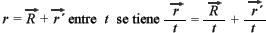 El desplazamiento de A relativo al sistema de origen O es igual a la suma vectorial de los vectores de posición de la partícula A relativos al sistema móvil y fijo. Es indudable que el tiempo t que transcurre es el mismo de ambos sistemas, luego dividiendo la relación: